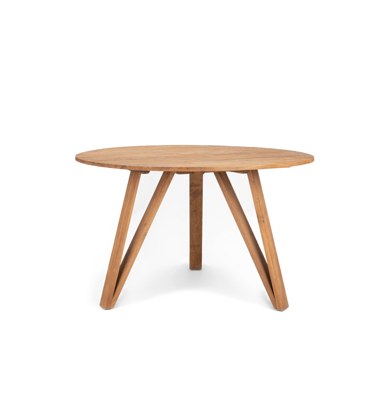 Met zijn elegant ontworpen poten en ronde tafelblad heeft de Artisan Ronde Tafel perfect uitgebalanceerde proporties. Geheel vervaardigd uit massief hergebruikt teakhout, afkomstig van eeuwenoude huizen in Oost-Java, is deze tafel gemaakt om een leven lang mee te gaan.