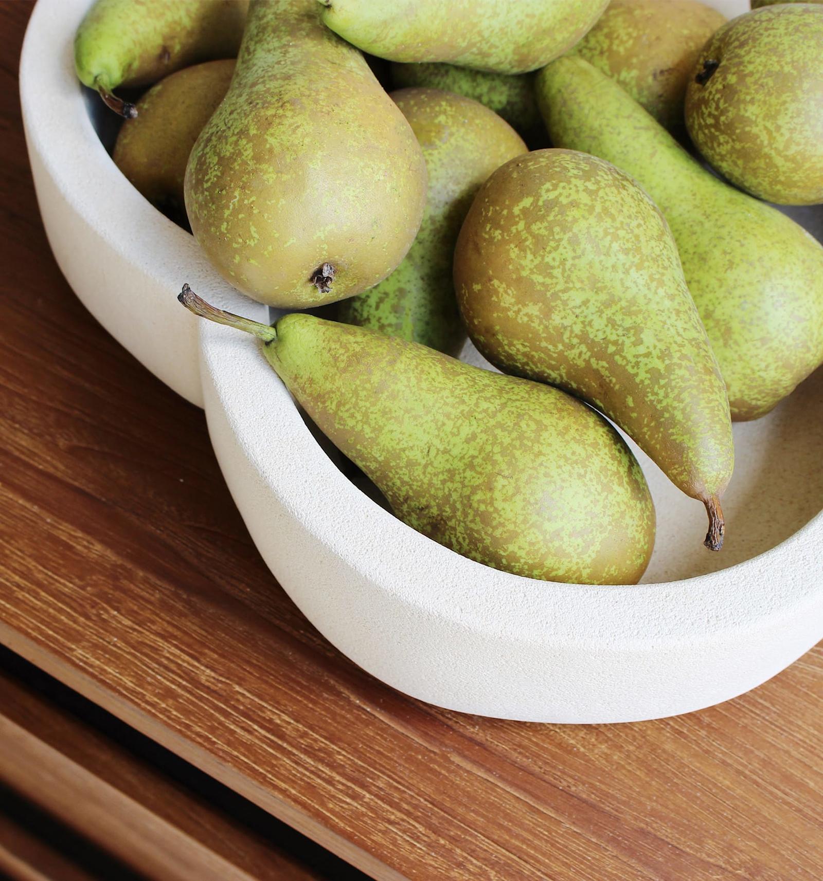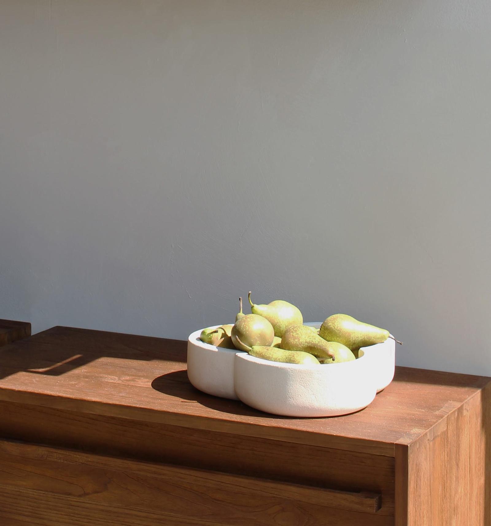 De DB Bowl-serie is een meesterwerk van vakmanschap. Elke schaal heeft de elegante 'Trefoil'-vorm, bestaande uit drie in elkaar grijpende cilinders. Handgemaakt van lokaal Javaans zandsteen, beschikt elke schaal over een prachtig gebogen basis en wordt gekarakteriseerd door de delicate aderen van de steen. Variërend van zachte roze en gele tinten tot gouden honingkleuren, maakt elke schaal dit tot een uniek en verfijnd kunstwerk. Perfect voor wie zijn interieur wil verrijken met een subtiele, natuurlijke schoonheid.