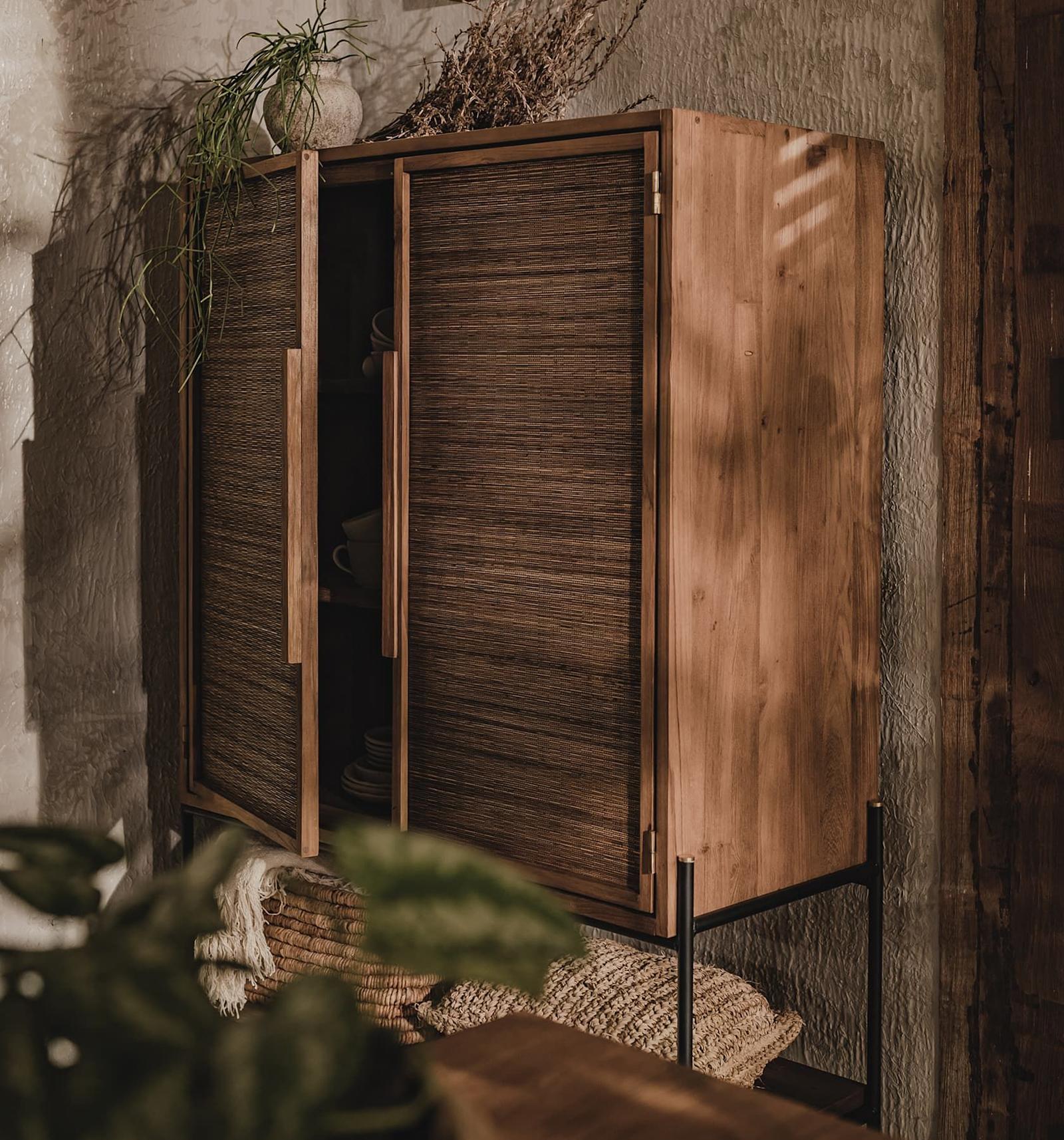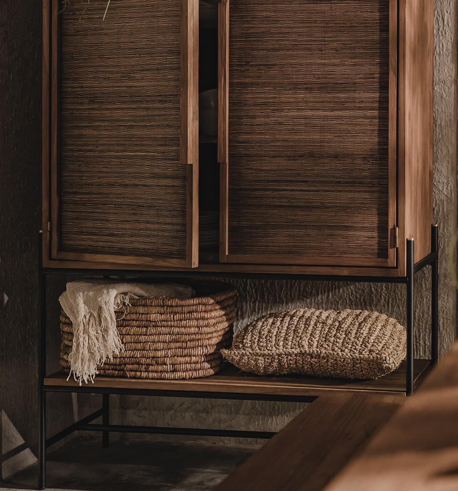 De Coco Kast is een meesterwerk van vakmanschap, waarin modern design en natuurlijke schoonheid perfect samenkomen. De handgemaakte deuren van kokosnootweving, gecombineerd met een robuust frame van gerecycled teakhout en ijzer, zorgen voor een luxe uitstraling die zowel duurzaam als van topkwaliteit is. Dit opvallende meubelstuk tilt elk interieur naar een hoger niveau en biedt tegelijkertijd de perfecte opbergoplossing. De Coco Kast is niet alleen een praktische keuze, maar ook een statement van stijl en verfijning in uw woonruimte.