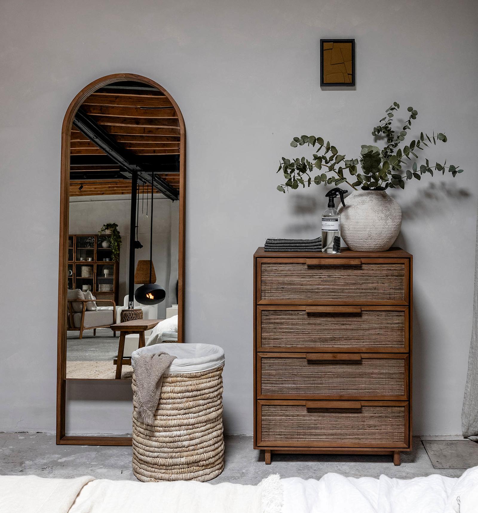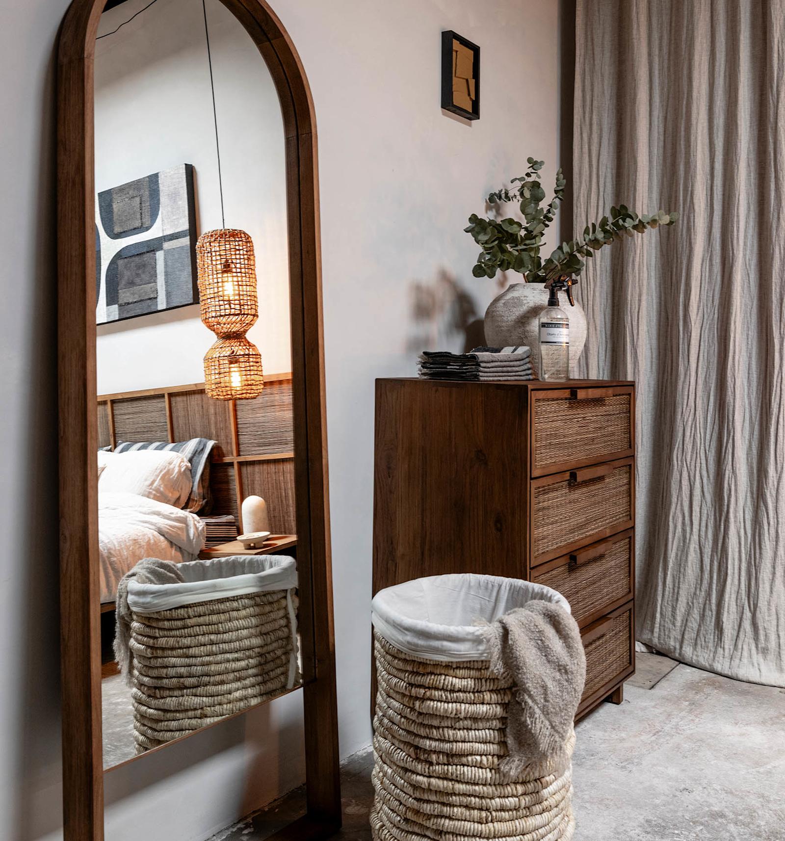De elegante Coco wandspiegel is een tijdloos en verfijnd meubelstuk dat moeiteloos in elk interieur past. Het ovale frame, met de hand gevormd uit gerecycled teakhout, omlijst de spiegel op een unieke en stijlvolle manier. Het minimalistische ontwerp en de volle afmeting maken deze spiegel niet alleen praktisch, maar ook een prachtige toevoeging die charme en ruimte aan je kamer toevoegt. Een perfecte balans tussen klassieke schoonheid en moderne eenvoud, die jarenlang meegaat.