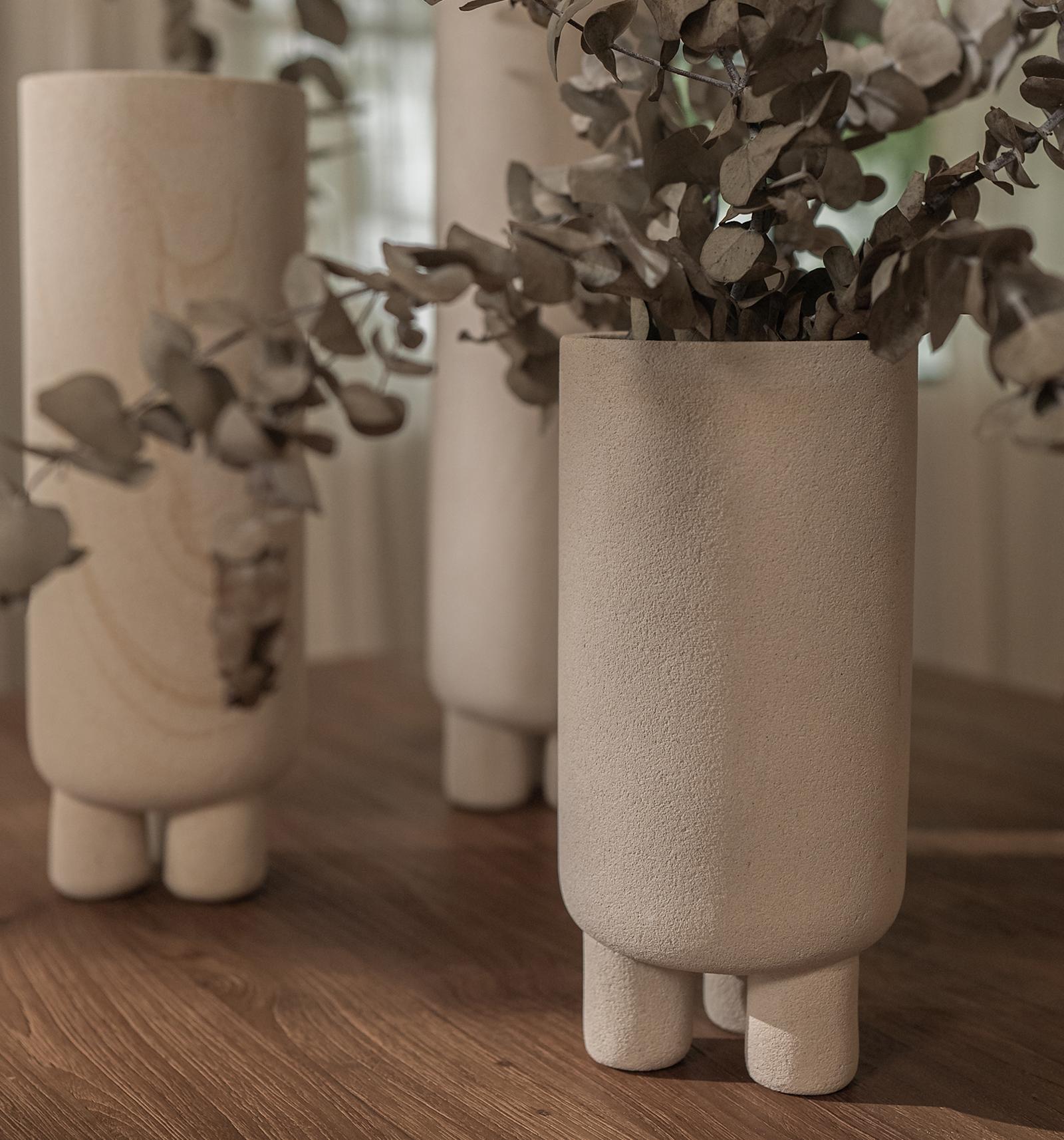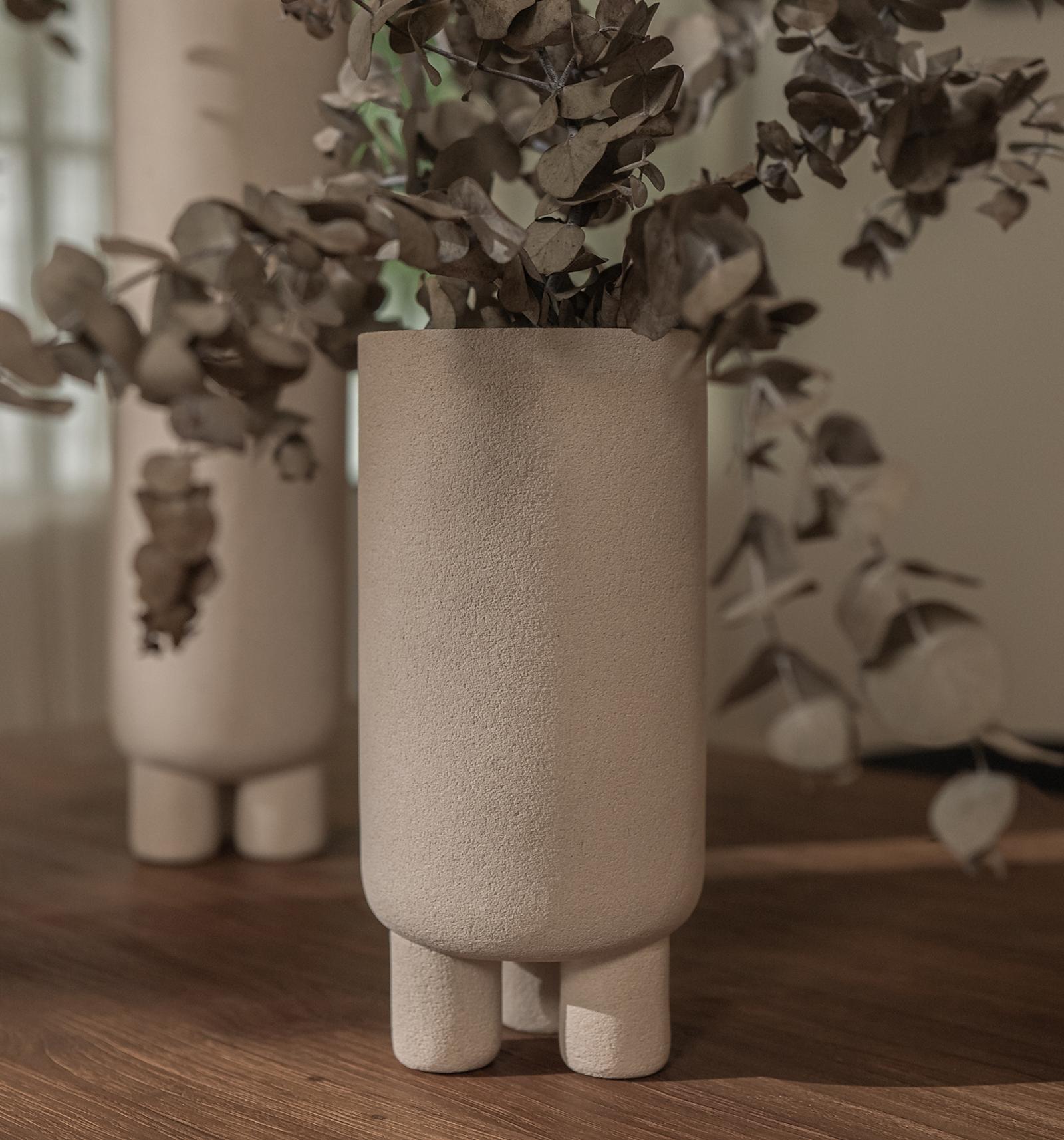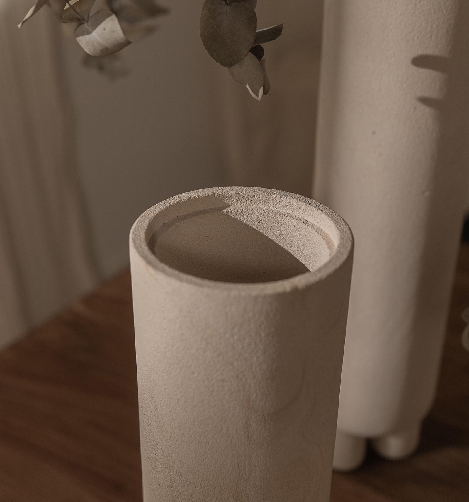 De Elin Vaas is een verfijnd meesterwerk van handgemaakt vakmanschap, vervaardigd uit licht lokaal Javaans zandsteen. Deze cilindervormige vaas, gedraaid door de vakmensen van dBodhi, rust op drie elegante elliptische zandstenen pedestal-poten die een subtiele, zen-achtige balans en harmonie uitstralen. De Elin Vaas is niet alleen een functioneel object, maar een kunstwerk op zich dat moeiteloos een gevoel van rust en elegantie toevoegt aan elk meubelstuk. Een perfect statement voor wie zijn interieur wil verrijken met een unieke en tijdloze uitstraling.