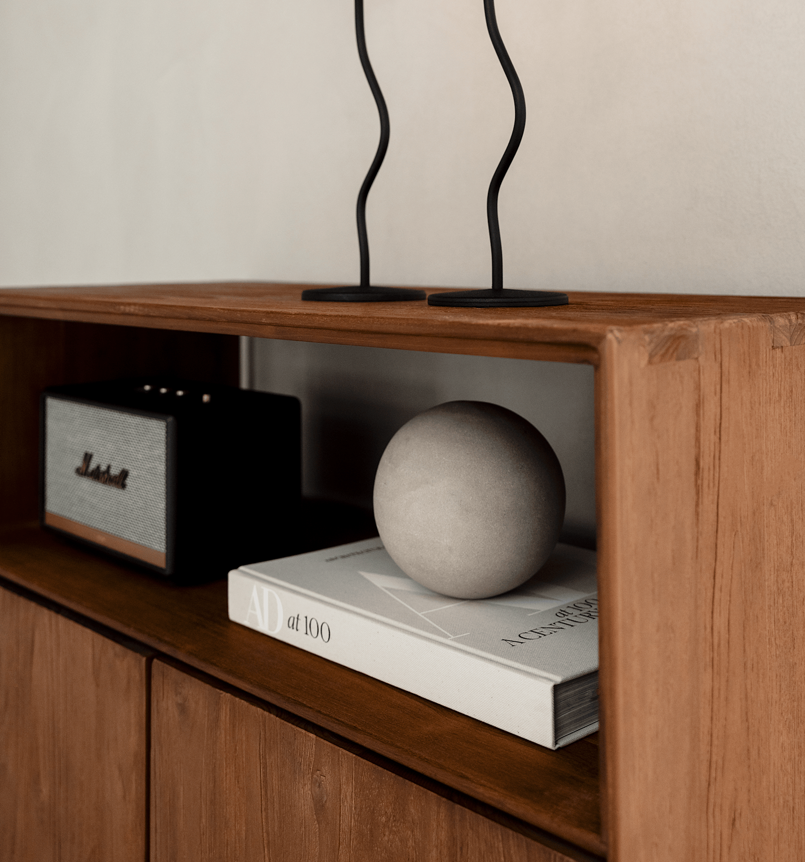 De Grace Open Legger Kast is een stijlvolle en veelzijdige toevoeging aan elk interieur, met een verfijnde combinatie van moderne en Mid Century design. De dubbele deuren, gemaakt van gerecycled teakhout, zijn voorzien van elegante, gestroomlijnde handgrepen die de kast een luxe uitstraling geven. Perfect voor elke kamer, biedt deze prachtige kast niet alleen praktische opbergruimte, maar ook een tijdloze charme die moeiteloos in verschillende interieurstijlen past. Een must-have voor wie op zoek is naar functionaliteit met een vleugje elegantie!