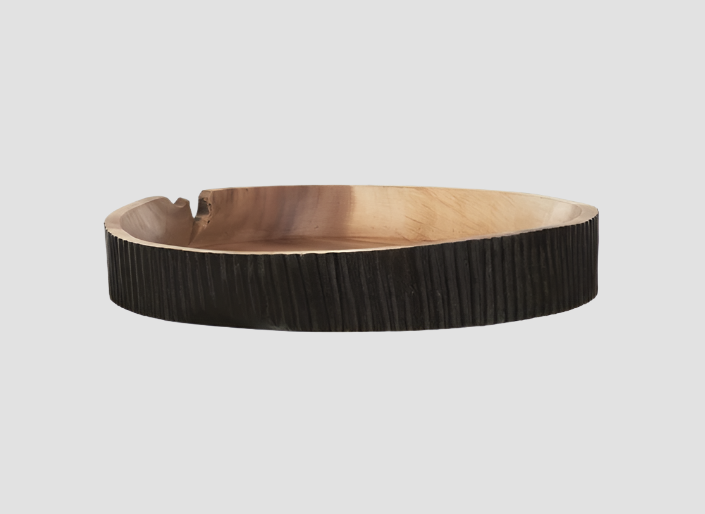 Breng warmte en karakter in je interieur met deze exclusieve schaal van MUST Living, vervaardigd uit massief suar hout en afgewerkt in een opvallende burned black tint. Met een royale diameter van 40 cm en een hoogte van 6,5 cm of 8 cm is deze schaal niet alleen functioneel, maar ook een echte blikvanger.