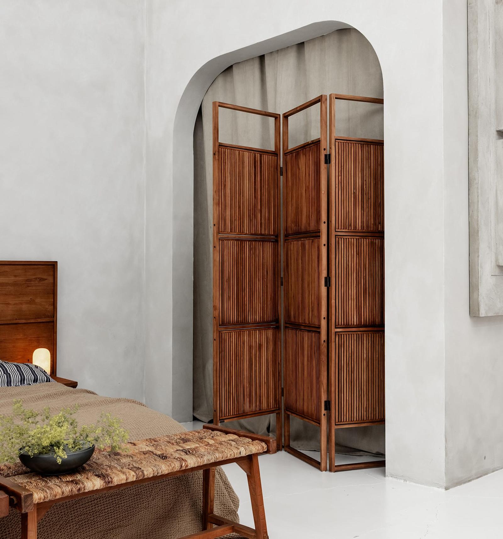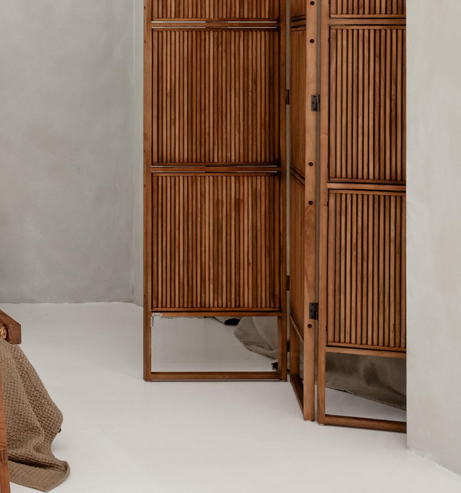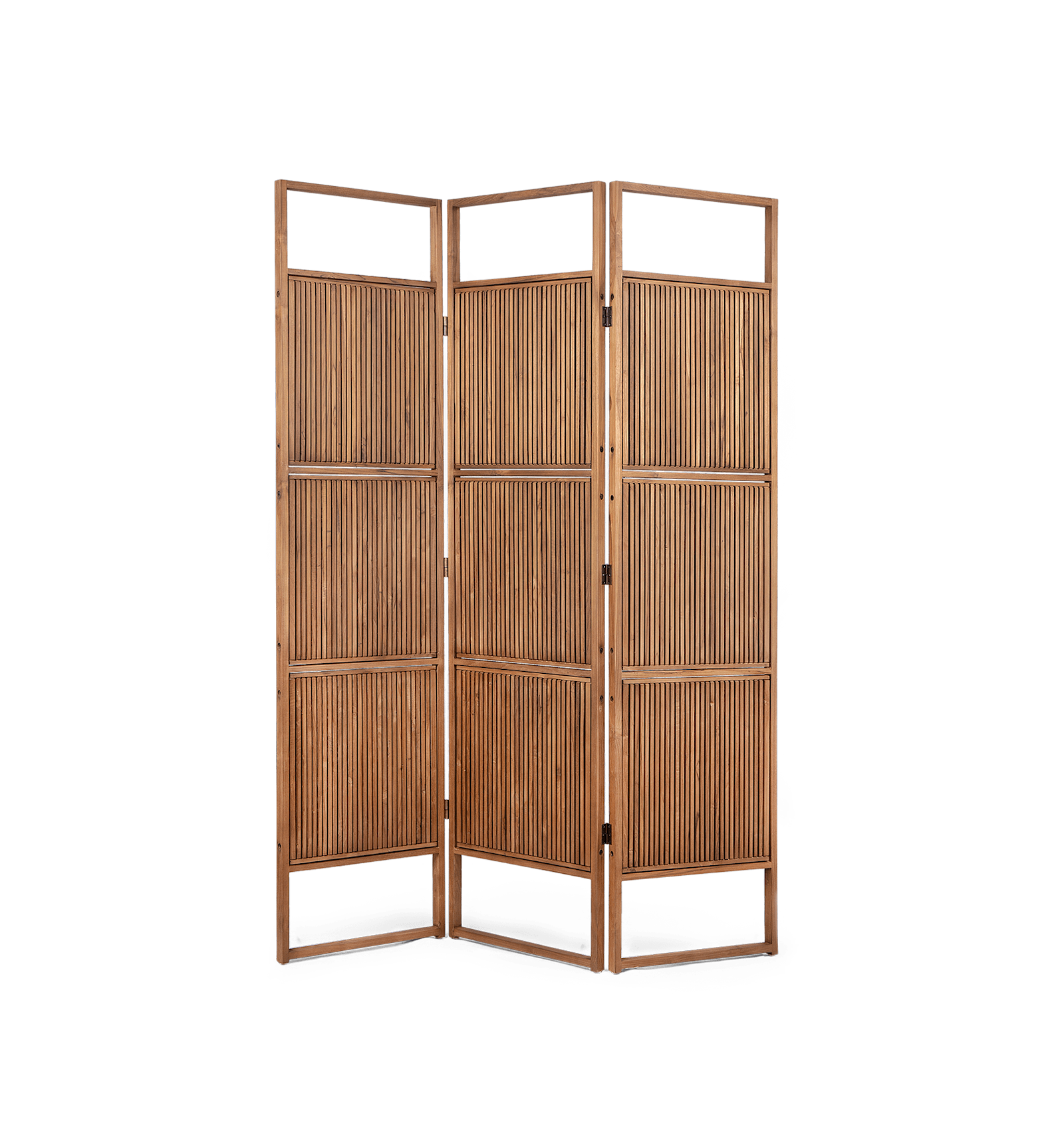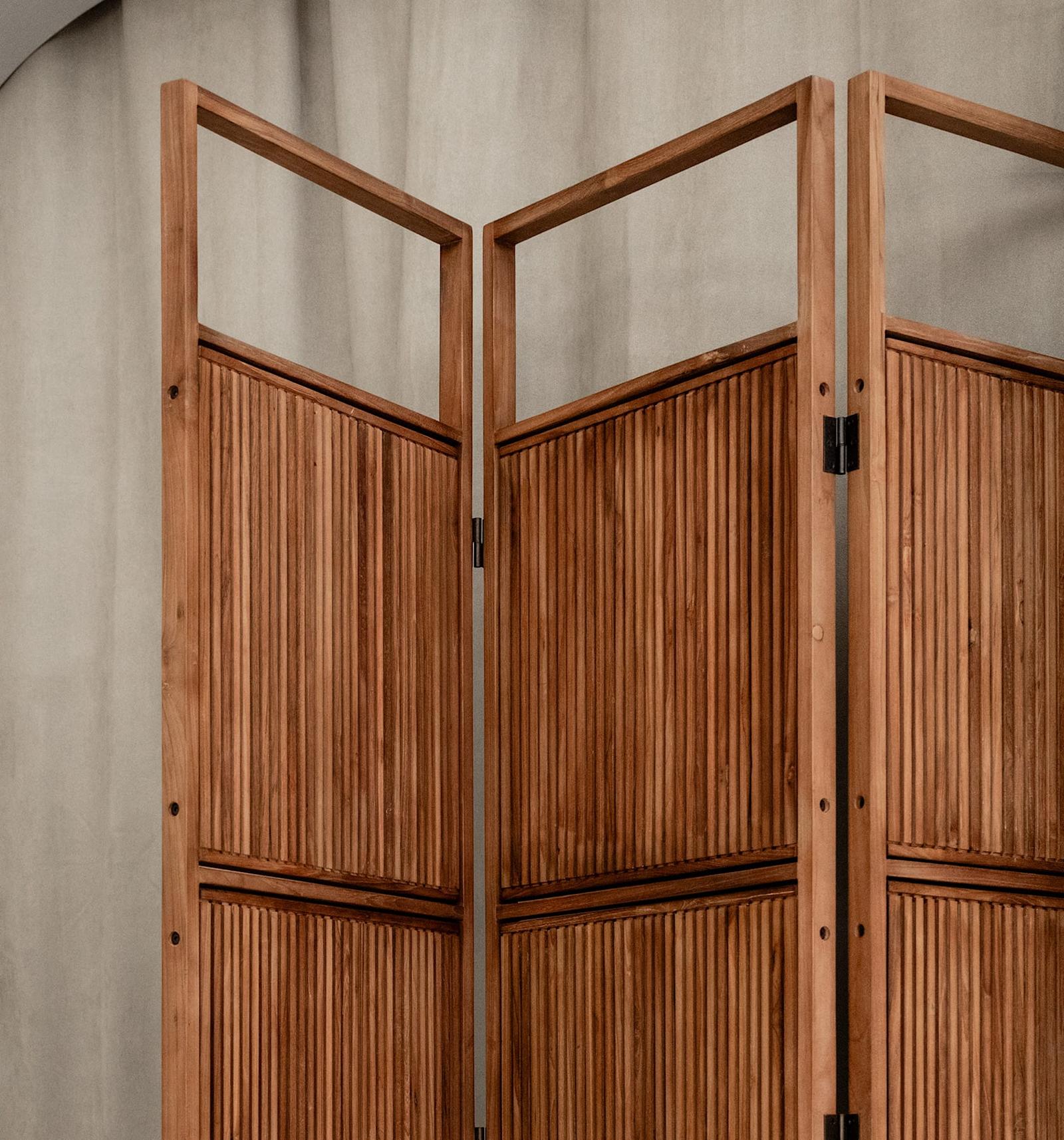 Elegantie ontmoet tijdloze schoonheid in deze verfijnde 3-panelige roomdivider, die een perfecte aanvulling vormt voor klassieke interieurs. Het teak frame en het vakmanschap van gerecycled teak zorgen voor een stijlvolle, nostalgische uitstraling die elke ruimte verrijkt. Handgemaakt tot in de perfectie, biedt deze roomdivider niet alleen een praktische oplossing, maar creëert ook een rustgevende sfeer in je woning. Een chique en verfijnde toevoeging die zowel charme als balans toevoegt aan elk interieur.