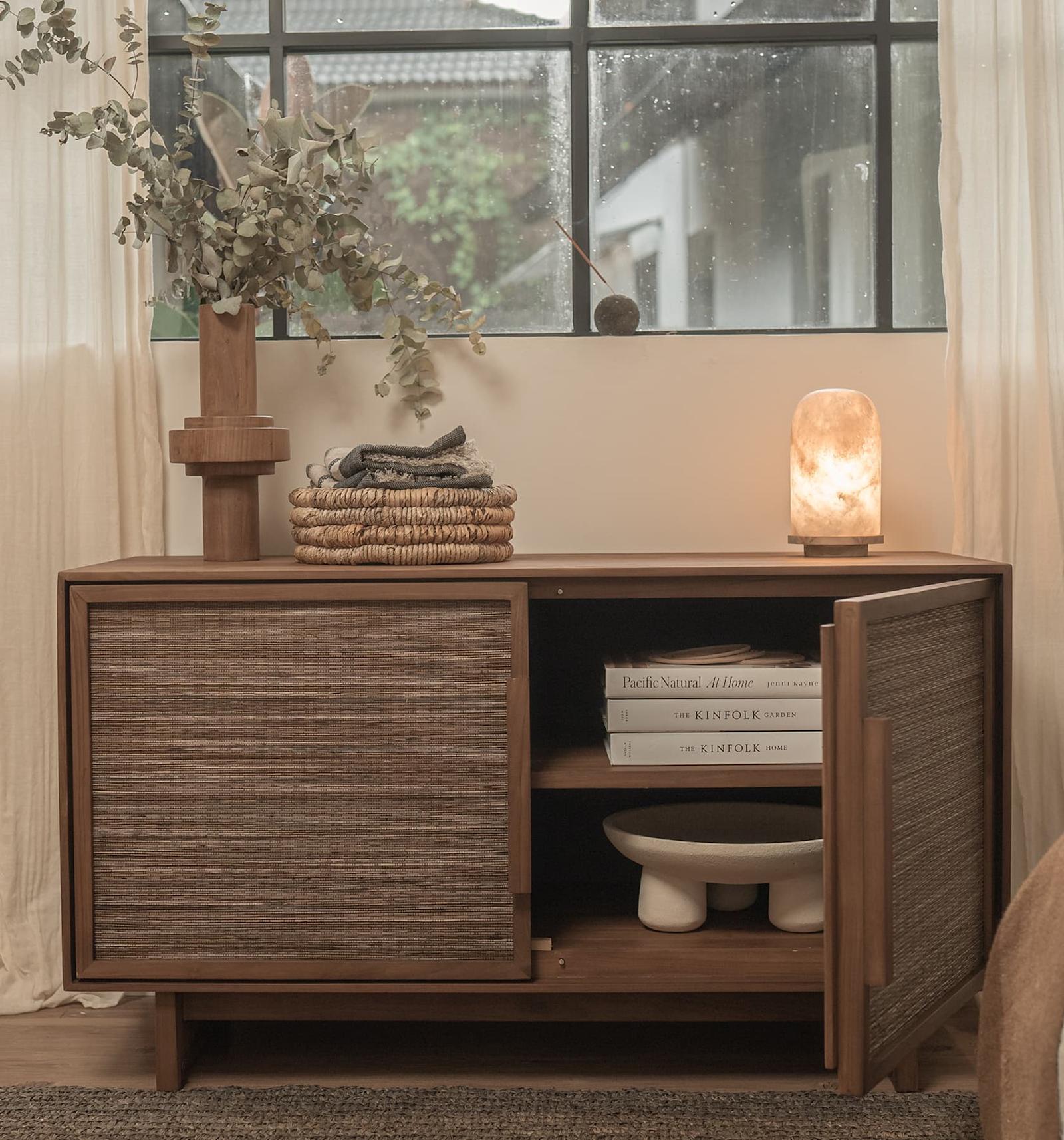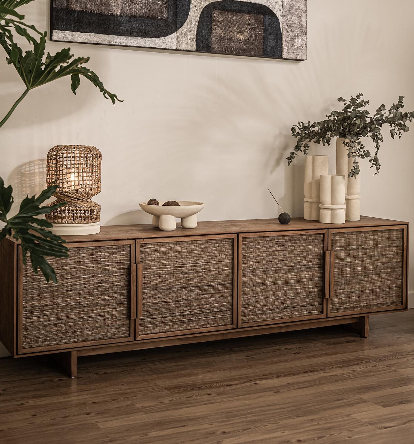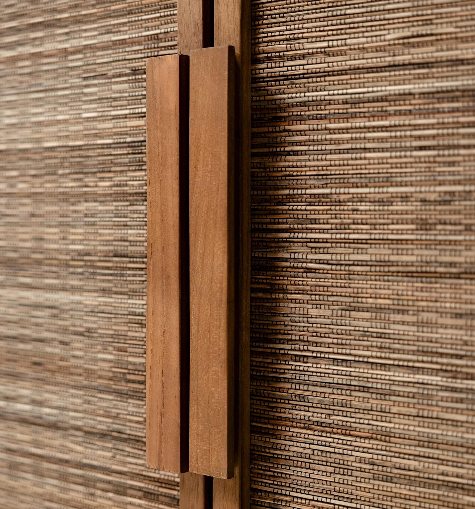 Dit prachtige lage Hopper Dressoir is een meesterwerk van vakmanschap, handgemaakt met verschillende ambachtelijke technieken. Het dressoir is vervaardigd uit gerecycled teak en heeft stevige, massieve poten die de natuurlijke schoonheid van het hout benadrukken. De twee deuren zijn gemaakt van duurzaam, handgeweven kokosnootpalmenmiddenschors, met een betoverende textuur die charme en warmte toevoegt aan elke ruimte. Achter de deuren bevinden zich twee ruime binnenplanken, perfect voor het opbergen van je favoriete items. Een stijlvolle en functionele toevoeging aan elk interieur. v v