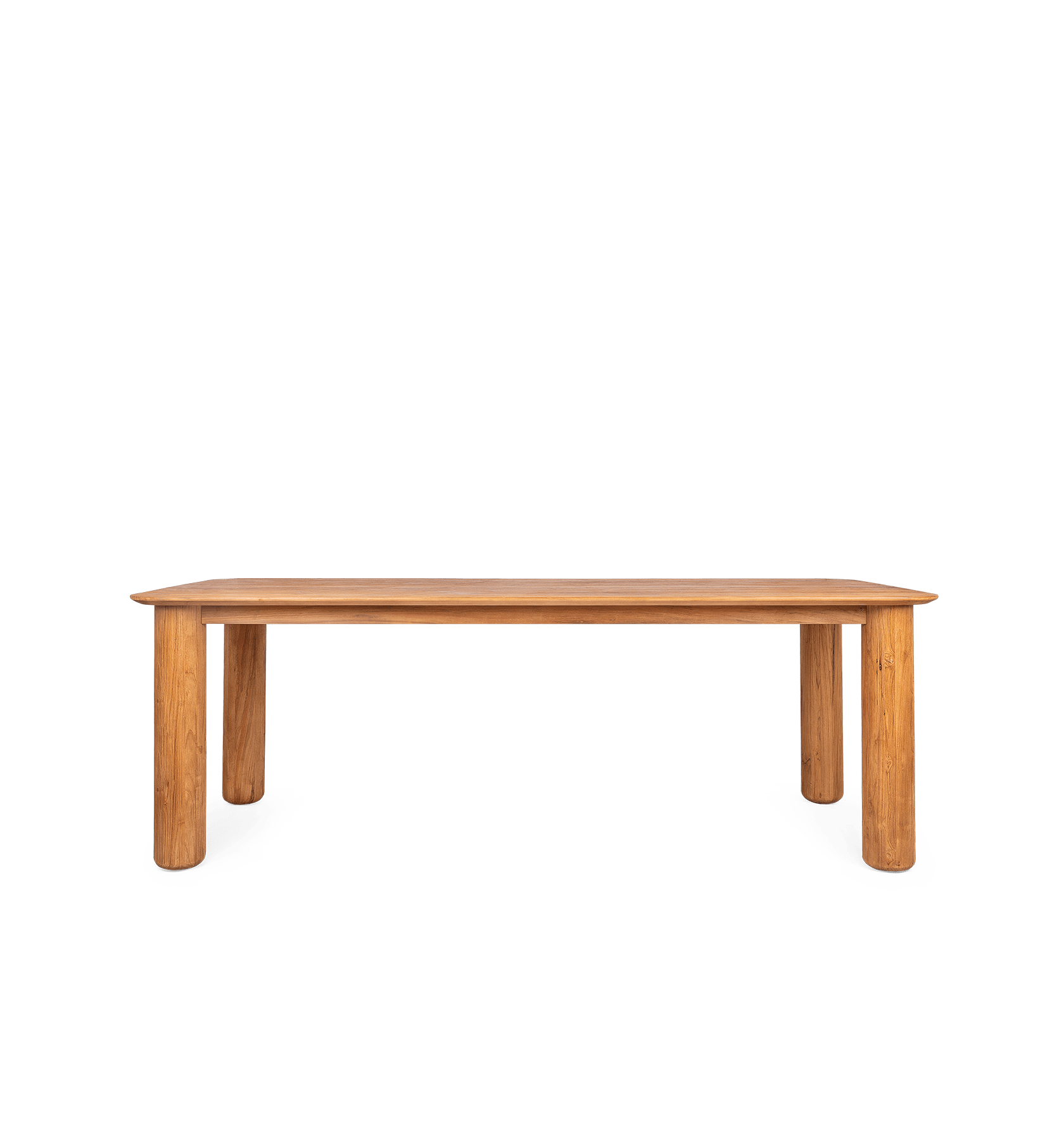 De Dino Eettafel, beschikbaar in vier verschillende maten, is een absolute aanwinst voor elk interieur. Vervaardigd uit gerecycled teakhout, biedt het tafelblad met elegante, praktische afgeschuinde en gebogen randen een verfijnde uitstraling. De stevige, gedraaide voetstukpoten zorgen voor een stabiele en tijdloze basis. De subtiele afwerking van het hout voegt een rijke, ‘geleefde’ rustieke charme toe, waardoor deze tafel niet alleen praktisch is, maar ook karakter en warmte uitstraalt in elke ruimte.