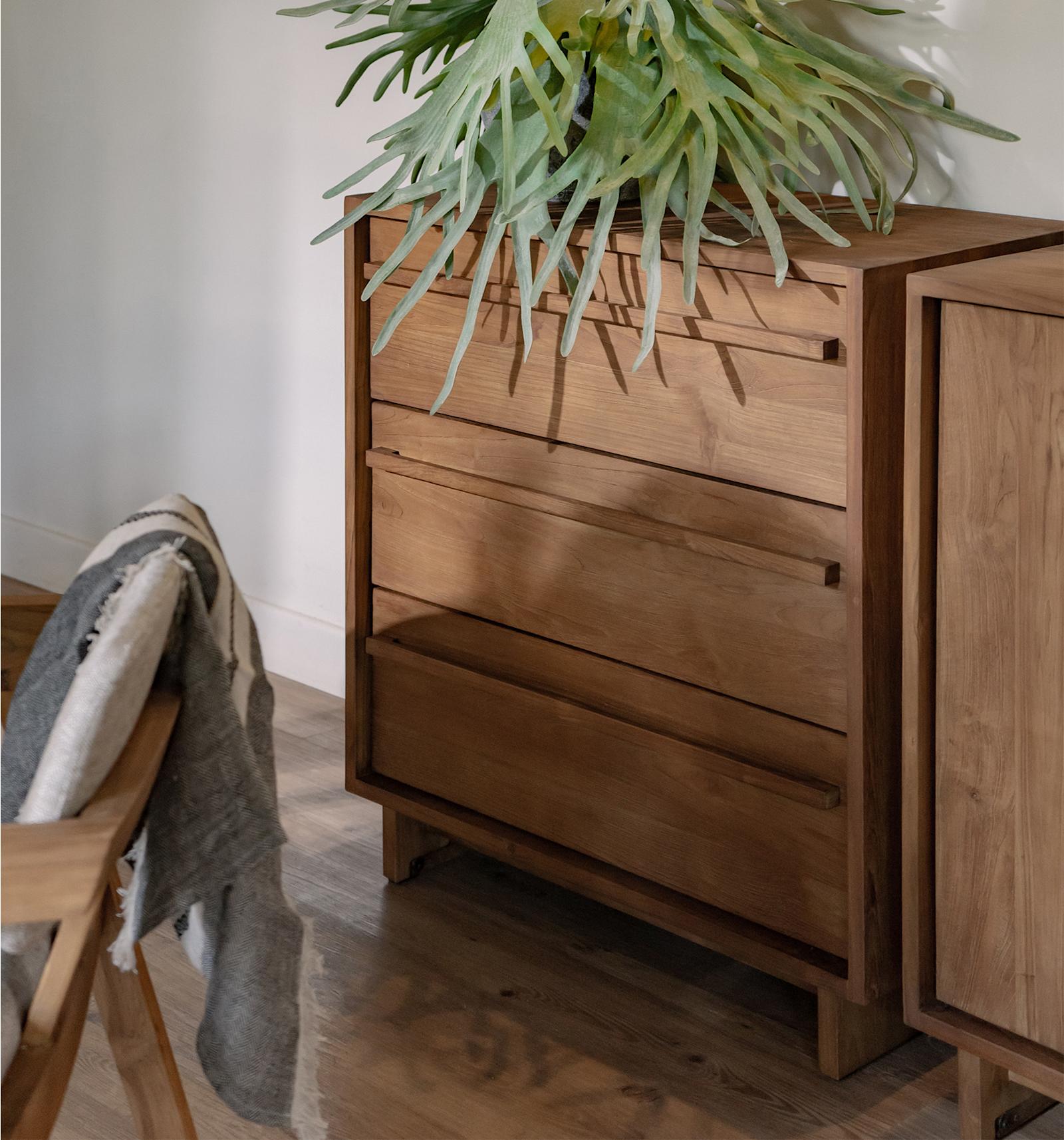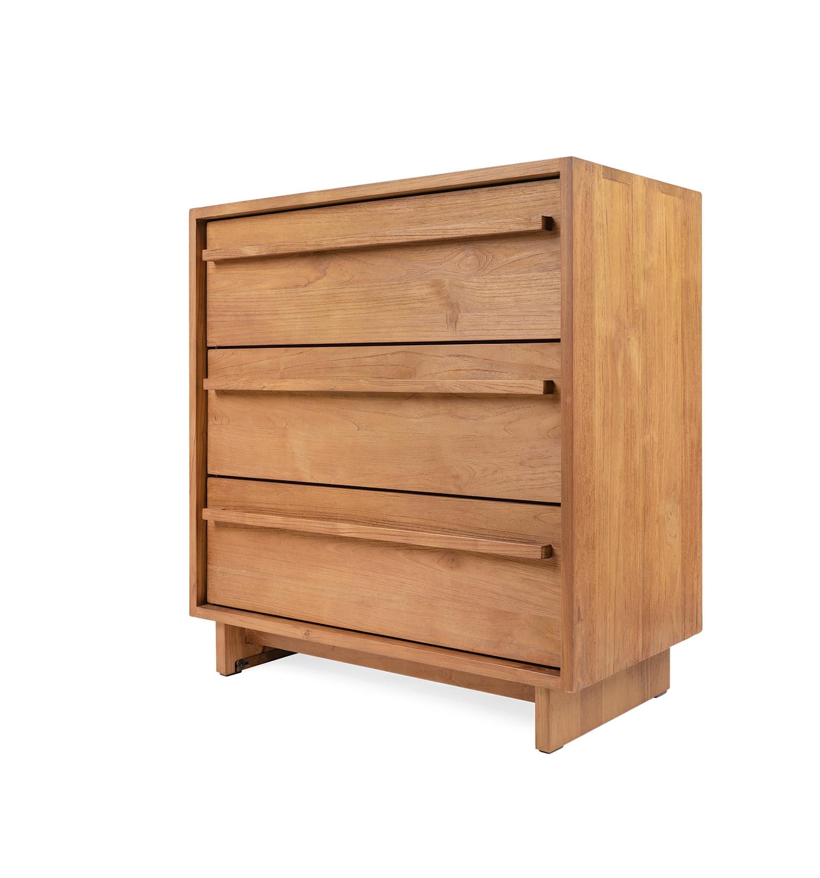 De Inline Ladekast met drie lades is een stijlvolle en veelzijdige dressoirkast die moeiteloos in elk interieur past dankzij het strakke en moderne ontwerp. Handgemaakt van gerecycled teakhout, straalt deze kast zowel duurzaamheid als verfijning uit. De minimalistische, gerecyclede teakhouten poten geven het een eigentijdse uitstraling, terwijl de drie ruime lades volop opbergruimte bieden voor al je spullen. Een perfecte combinatie van praktische functionaliteit en tijdloze schoonheid voor jouw huis.
