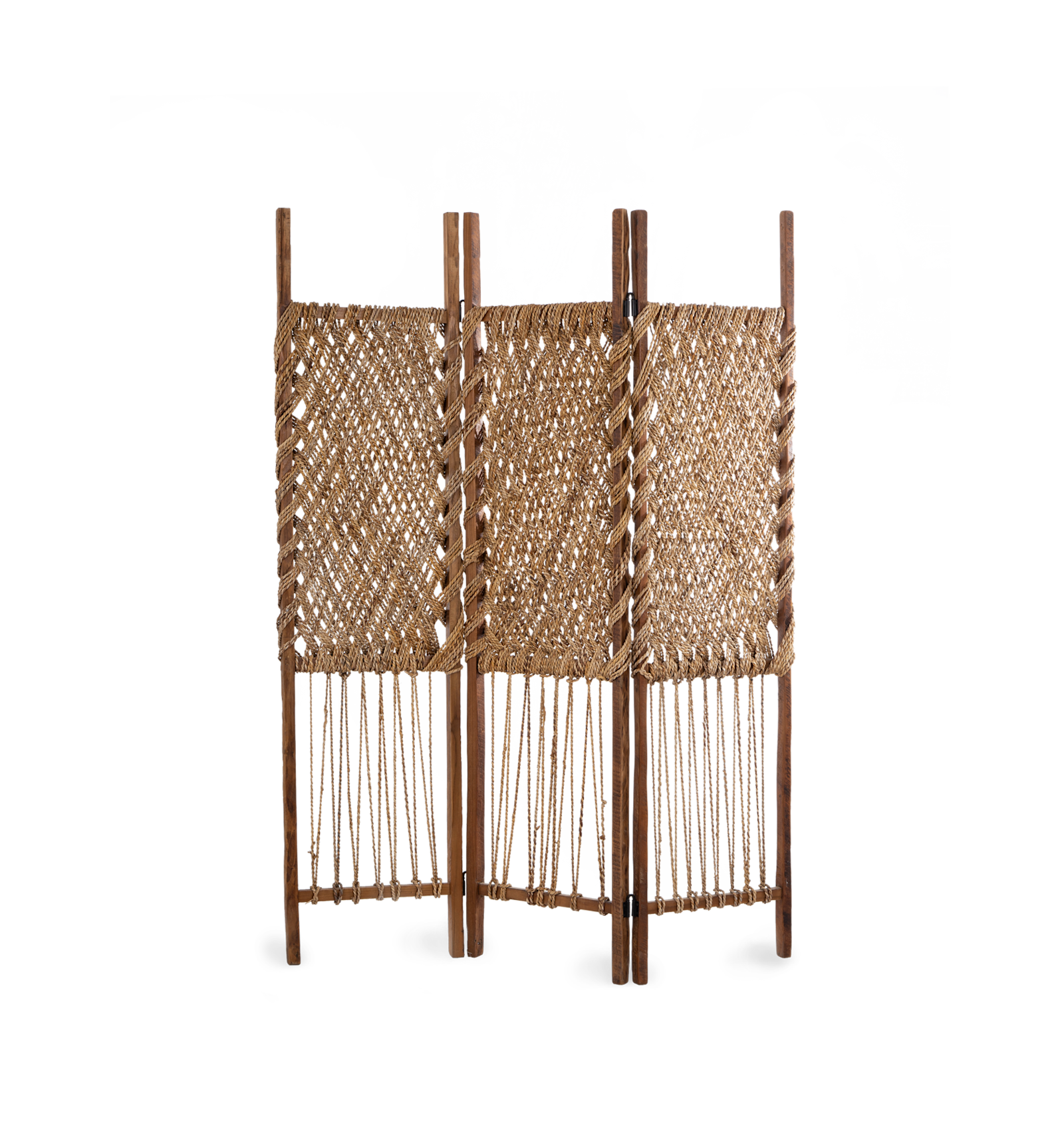 Roomdividers zijn niet alleen een slimme manier om je ruimte optimaal te benutten, maar ook een prachtige toevoeging aan je interieur. De Knut Roomdivider is een waar kunstwerk, vervaardigd uit hoogwaardig teakhout en versierd met een verfijnd, organisch abaca vlechtwerk. Handgemaakt door onze vakbekwame ambachtslieden, biedt deze roomdivider zowel een artistieke uitstraling als een praktische oplossing voor je ruimte. Het perfecte statementstuk dat stijl en functionaliteit op elegante wijze combineert.
