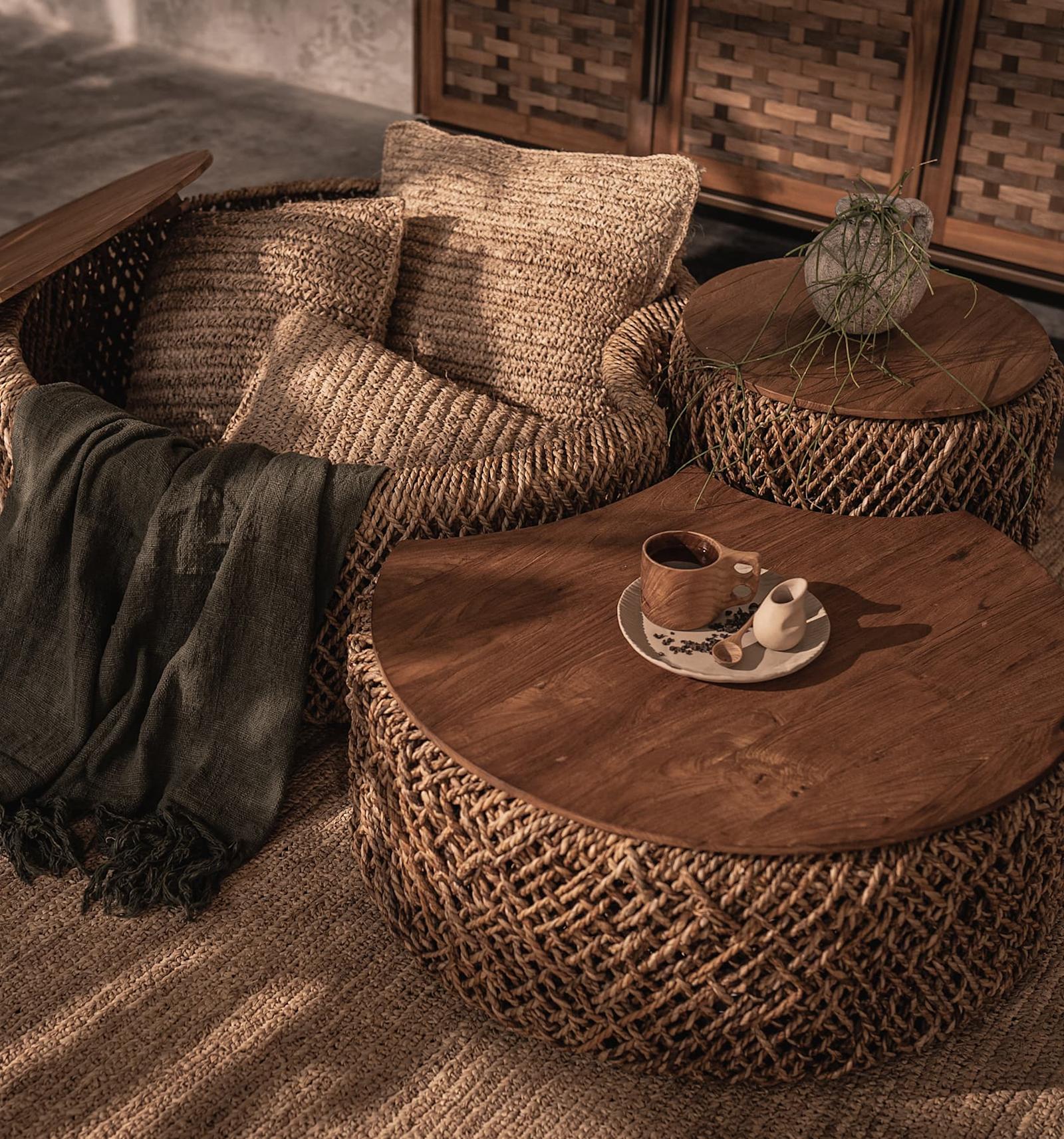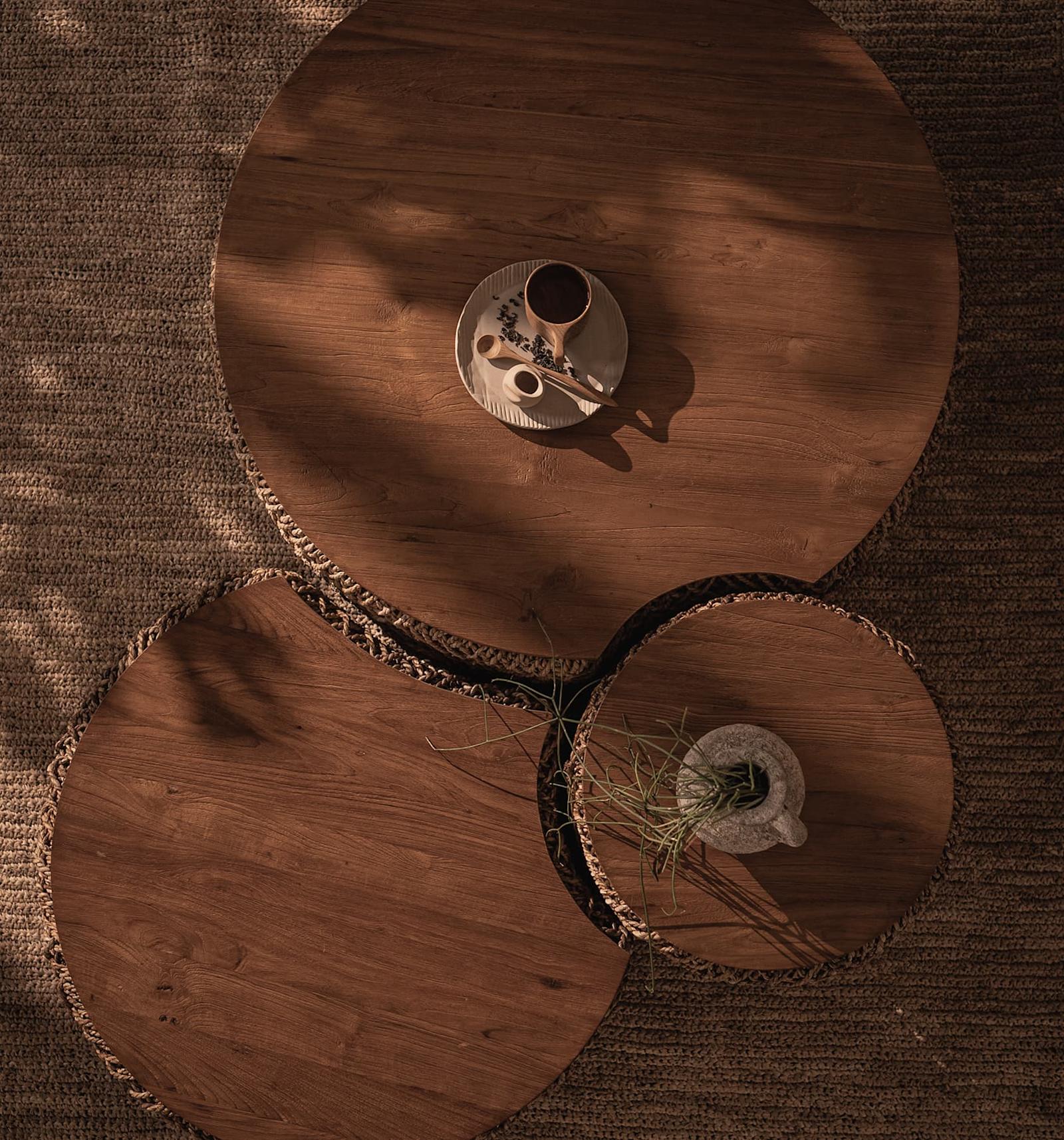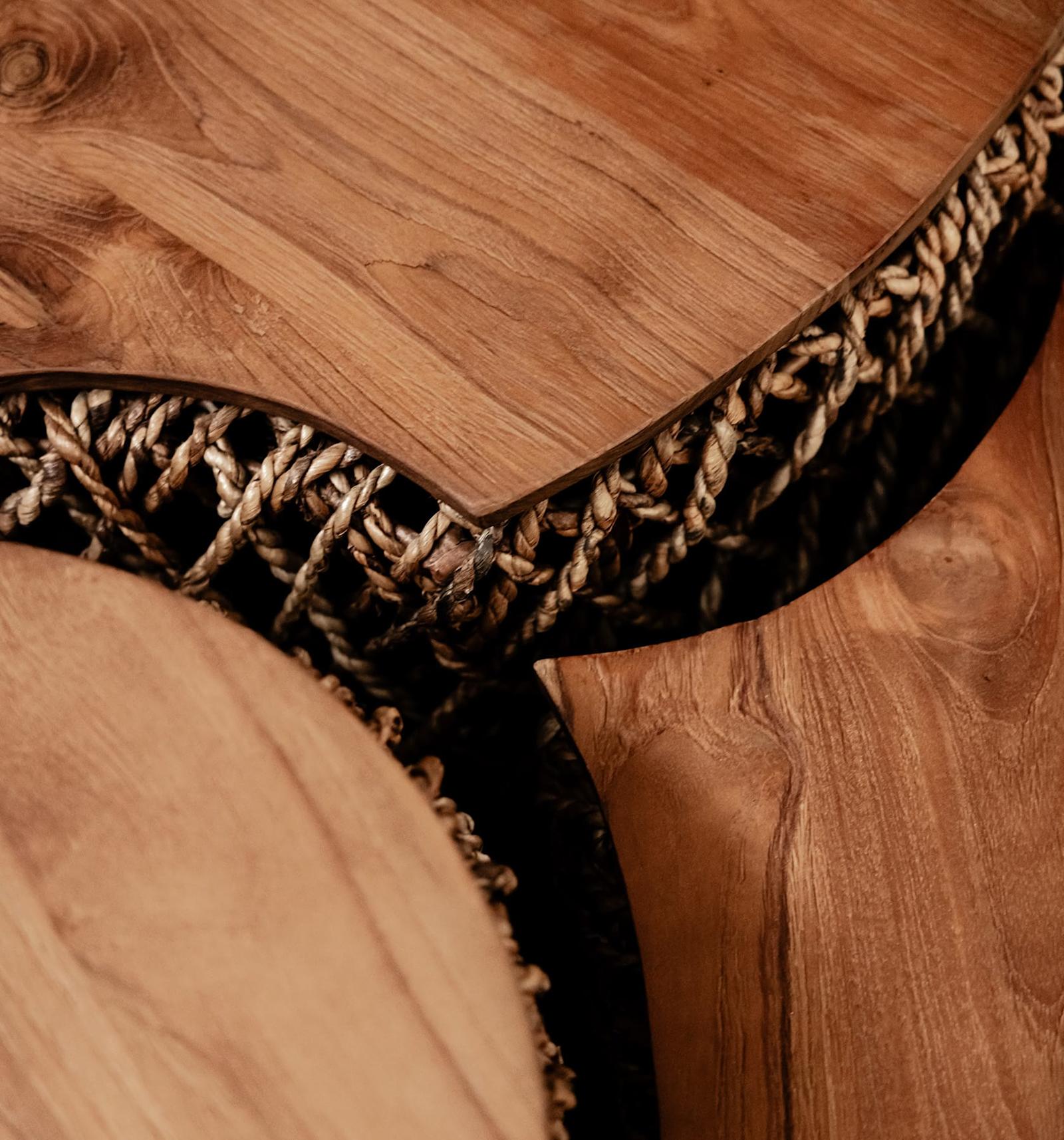 Ben je ook verliefd op de speelse charme van verschillende tafels samen? De Knut Padi Salontafel, geïnspireerd door de adembenemende vormen van Indonesië's beroemde rijstvelden, lijkt uit meerdere tafels te bestaan, maar is in werkelijkheid één prachtig compact geheel. Handgemaakt van met de hand gevlochten abaca touw en gerecycled teakhout, brengt deze tafel zowel natuurlijke schoonheid als een unieke uitstraling in je interieur. Een perfect statementstuk dat functionaliteit en design op een speelse manier combineert.