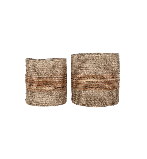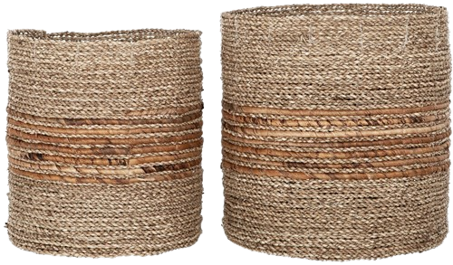 Breng zowel functionaliteit als stijl in je interieur met deze Set van 2 Manden, ideaal voor het opbergen van rondslingerende spullen of bijvoorbeeld plaids. De manden zijn zorgvuldig vervaardigd van zeegras en manillahennep, vezels afkomstig van de Abacá bananenboom, die zorgen voor een natuurlijke, organische uitstraling.