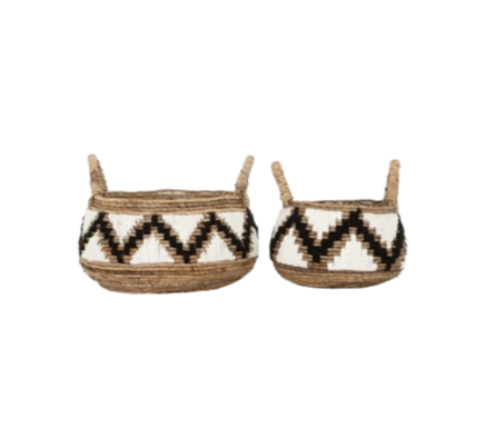 De manden zijn ontworpen met een uniek bohemian patroon en geven je interieur een natuurlijke, handgemaakte uitstraling. Hun ruime formaat maakt ze ideaal voor het opbergen van plaids, kussens of andere spullen die je netjes uit het zicht wilt houden.
