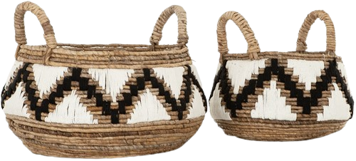 Voeg een vleugje bohemian charme toe aan je interieur met deze Set van 2 Manden van MUST Living. Perfect voor het opbergen van spullen of als decoratieve accenten in je huis, deze manden zijn zowel praktisch als stijlvol. Met afmetingen van 33 x Ø37 cm en 34 x Ø47 cm, passen ze prachtig in diverse ruimtes, van de woonkamer tot de slaapkamer.