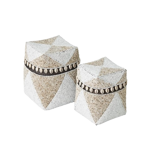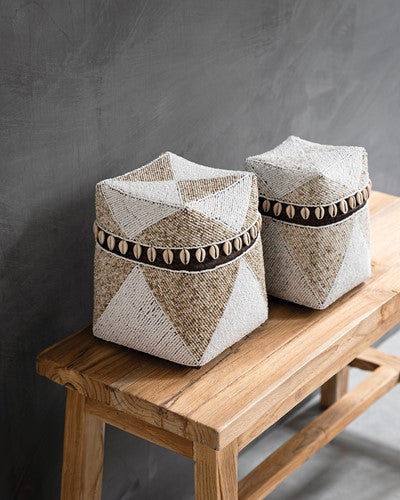 Breng een tropische, bohemian uitstraling naar je huis met deze prachtige mandenset van MUST. Gemaakt van hoogwaardige materialen, bieden deze manden niet alleen een esthetische meerwaarde, maar ook praktische opbergruimte voor allerlei items. De set bevat twee manden met de volgende afmetingen: 20 x 17 x 17 cm en 25 x 21 x 21 cm, perfect voor het opbergen van kleine accessoires, planten of andere decoratieve items.