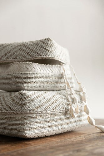 Breng een vleugje bohemian charme in je interieur met de Uluwatu Mandenset van MUST. Deze set van twee manden is perfect voor het opbergen van speciale items, terwijl ze tegelijk een stijlvolle decoratieve toevoeging zijn aan je ruimte. De natuurlijke uitstraling van de manden maakt ze een veelzijdige keuze voor zowel moderne als traditionele interieurs.