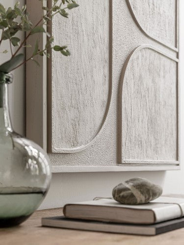 Met afmetingen van 102 x 76 x 4 cm of 127 x 102 x 4 cm is het een opvallend statement stuk dat je muur elegant siert. De zachte cream kleur voegt rust en warmte toe aan elke ruimte, waardoor het een ideale keuze is voor zowel moderne als klassieke interieurs.
