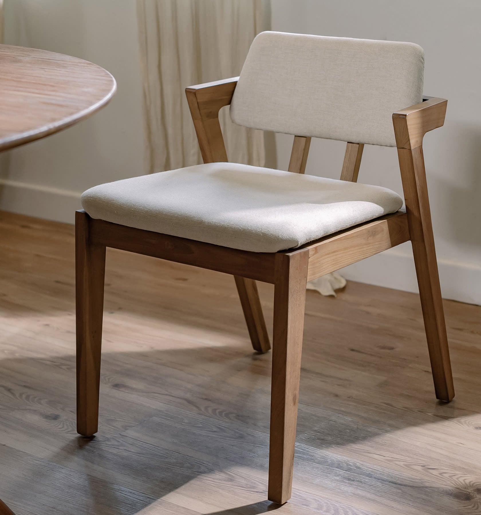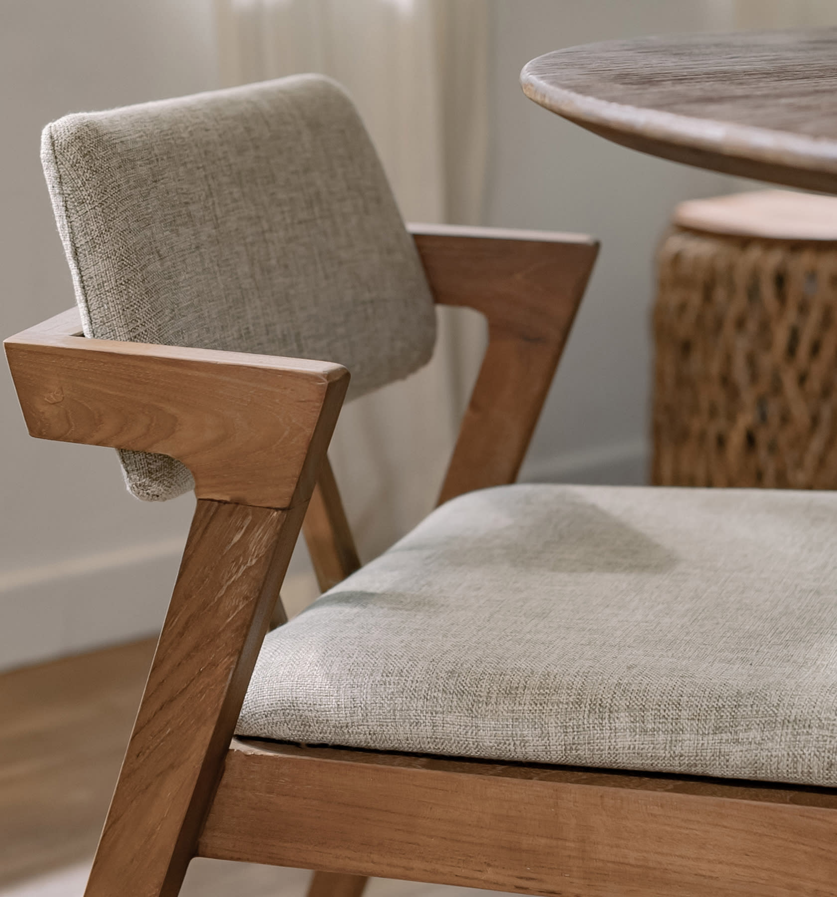 De Noa Stoel is een traditionele moderne stoel met een klassieke uitstraling. Handgemaakt door lokale ambachtslieden van teruggewonnen teakhout met optionele stoffen stoelen verkrijgbaar in 2 verschillende kleuren. De hoogwaardige eetkamerstoel heeft een stijlvolle en karakteristieke uitstraling die traditionele materialen en een modern design perfect combineert.