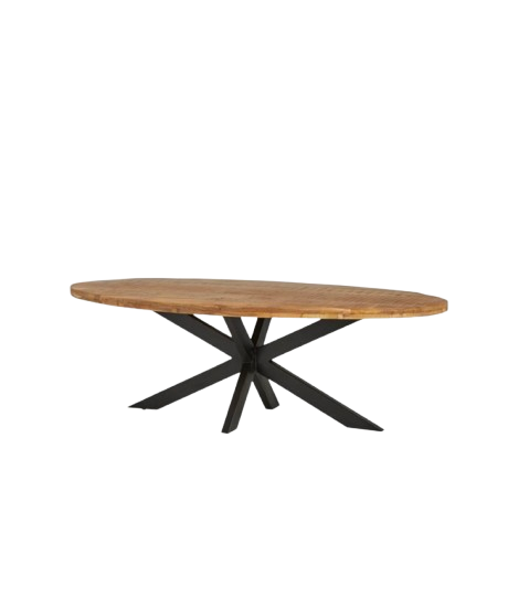 De eetkamertafel ovaal uit de Peru Rough Table Collection is een robuuste en stijlvolle keuze voor je interieur. Het tafelblad van massief mangohout, afgewerkt in een natuurlijke lak, heeft een authentieke uitstraling die perfect past in moderne en industriële interieurs. Het robuuste metalen onderstel met zwart gepoedercoating voegt een industriële flair toe en zorgt voor stabiliteit.