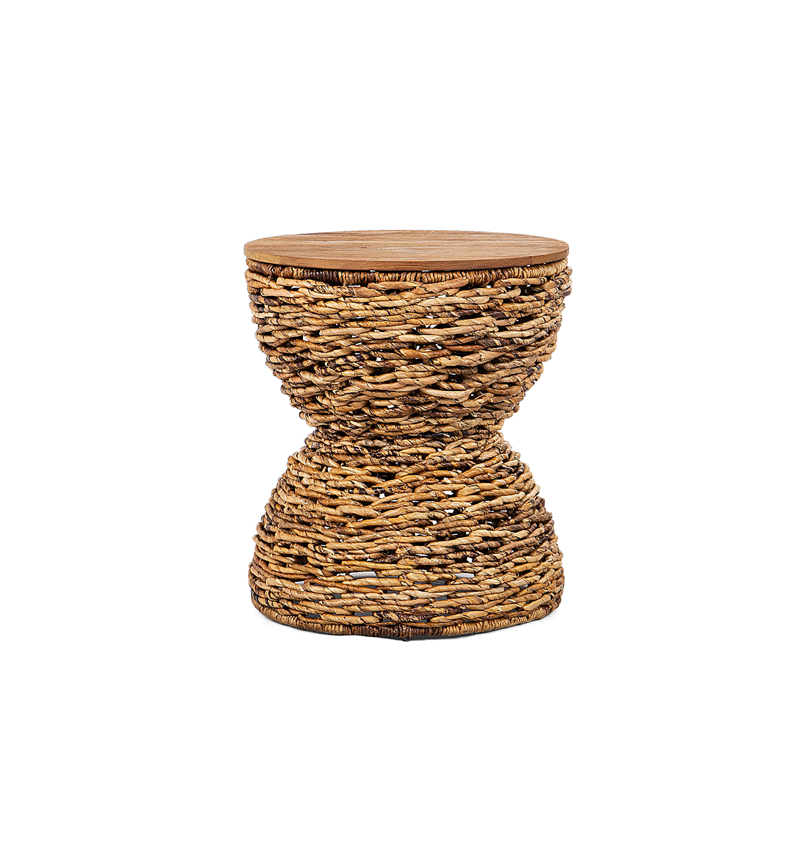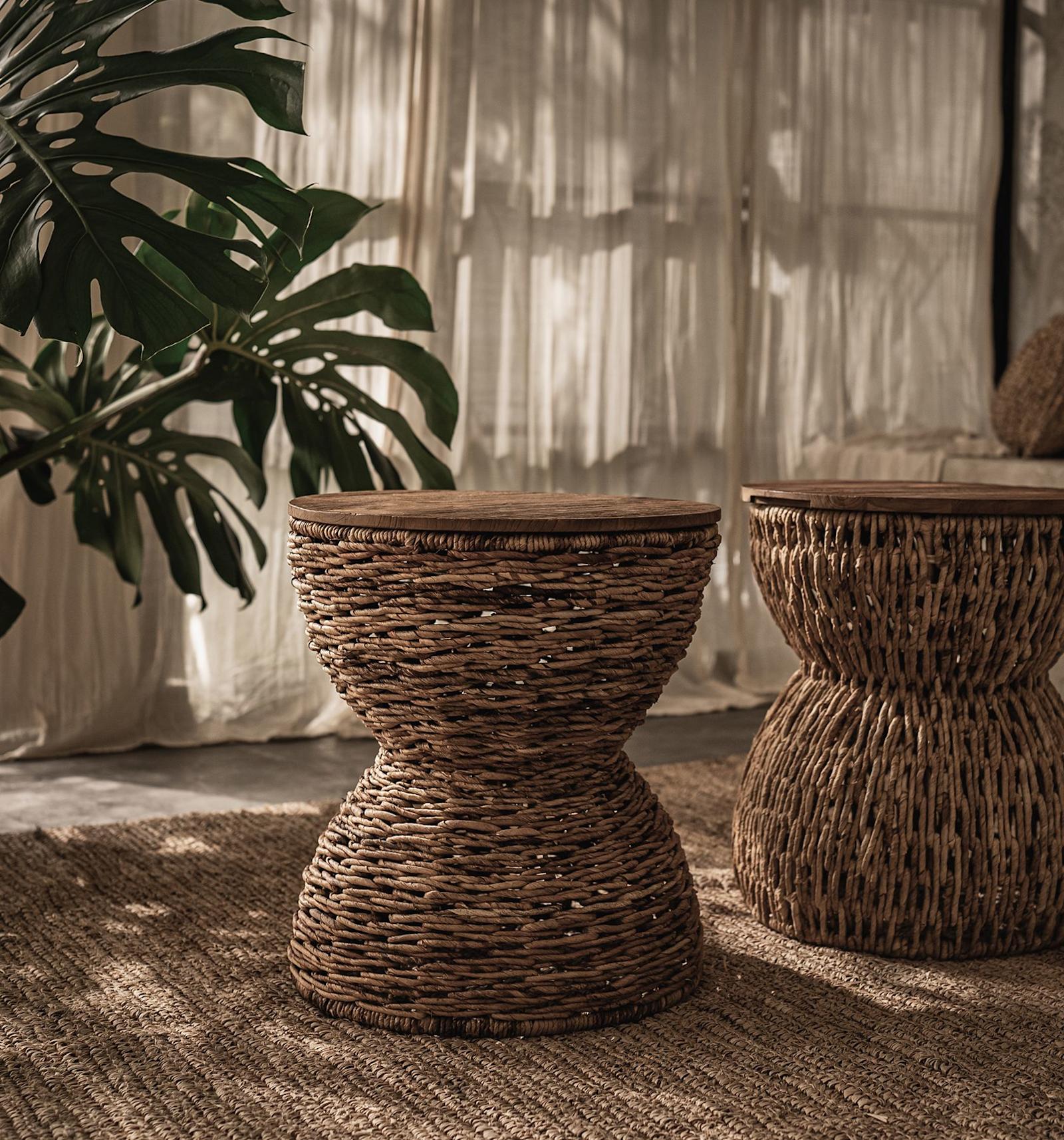 De trommelvormige Rebana Alto Kruk is een stijlvol en veelzijdig meubelstuk dat perfect kan dienen als kruk, salontafel of decoratief element, afhankelijk van je voorkeur. Het tafelblad is gemaakt van hoogwaardig gerecycled teakhout, terwijl het stevige ijzeren draadframe elegant is gewikkeld in organisch abaca touw, met de hand vervaardigd volgens een traditionele Javaanse techniek. Deze unieke kruk combineert vakmanschap, duurzaamheid en moderne flair, waardoor het een verfijnde toevoeging is aan elk interieur.