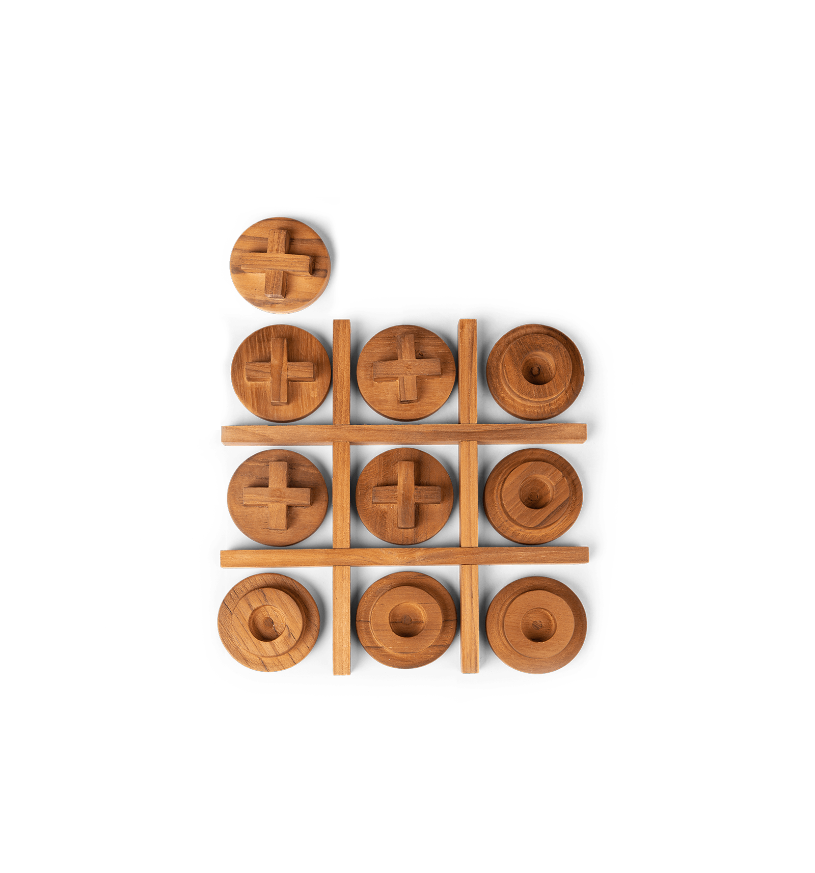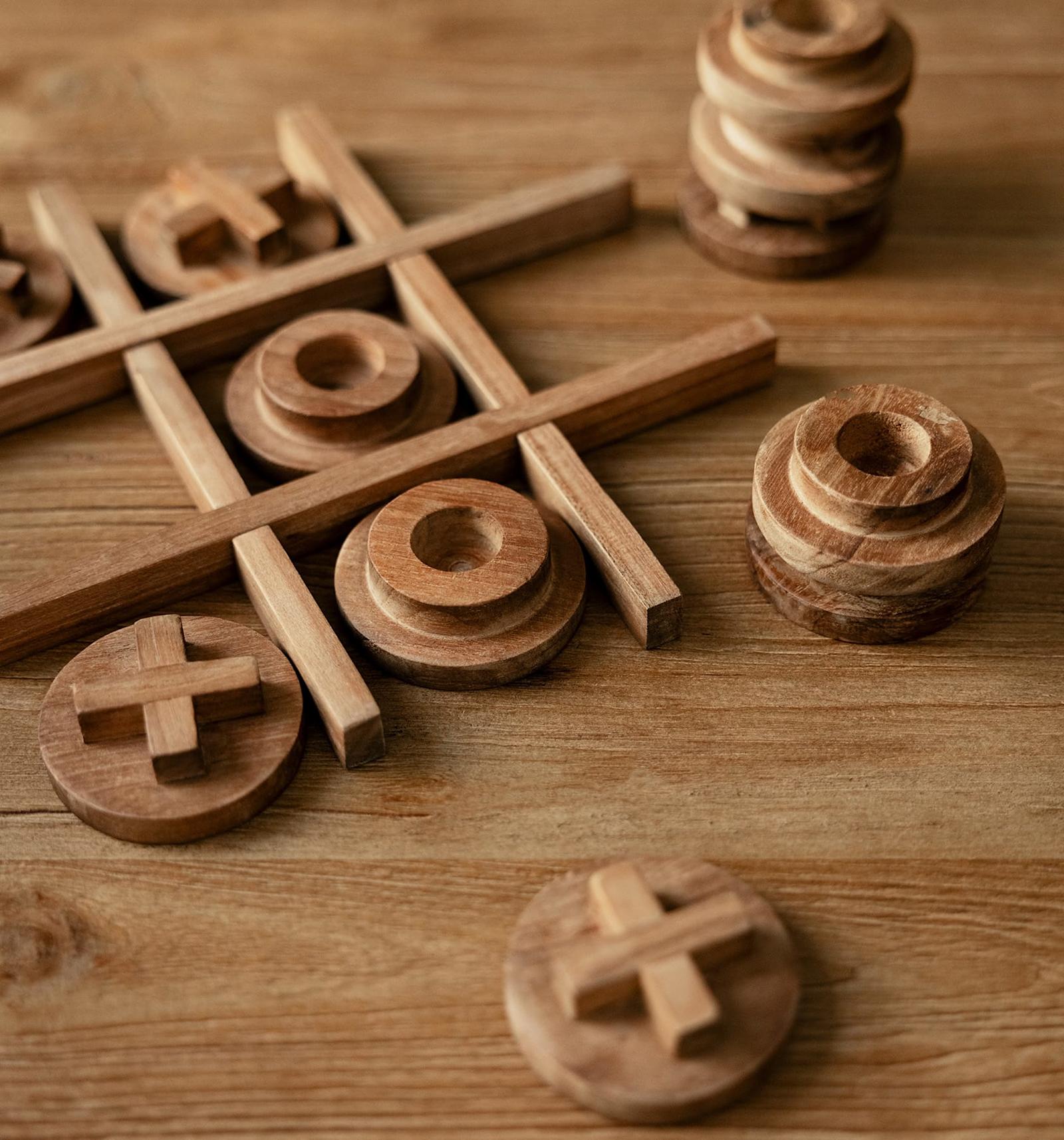 Tic-Tac-Toe’. As old as the pyramids, this game inspires friendship, affection and sincerity, in any generation young or old. Lovingly carved from Central Javan reclaimed teak, this game makes a wonderful and captivating centerpiece on any table or surface, contemporary or classic.
