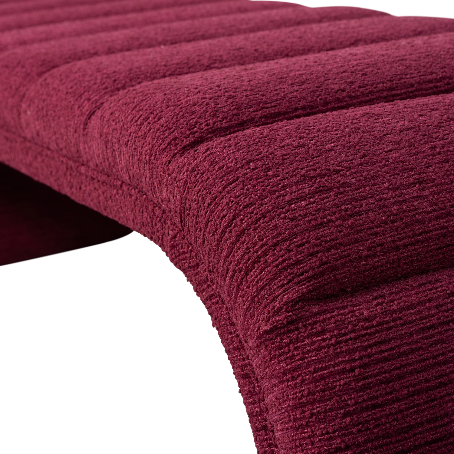 - Speelse uitstraling: Het ingestikte lijnenspel en de grove stof met een onregelmatig patroon maken het bankje een echte blikvanger.