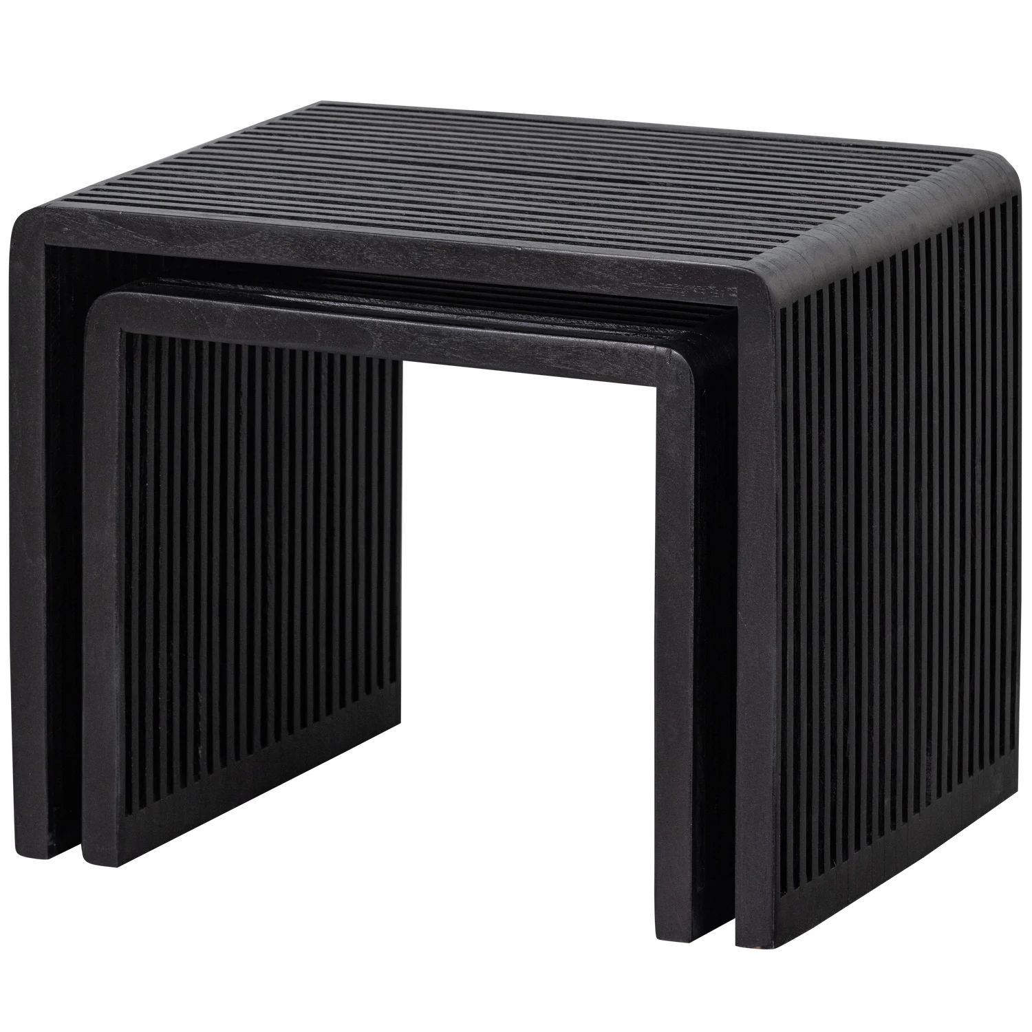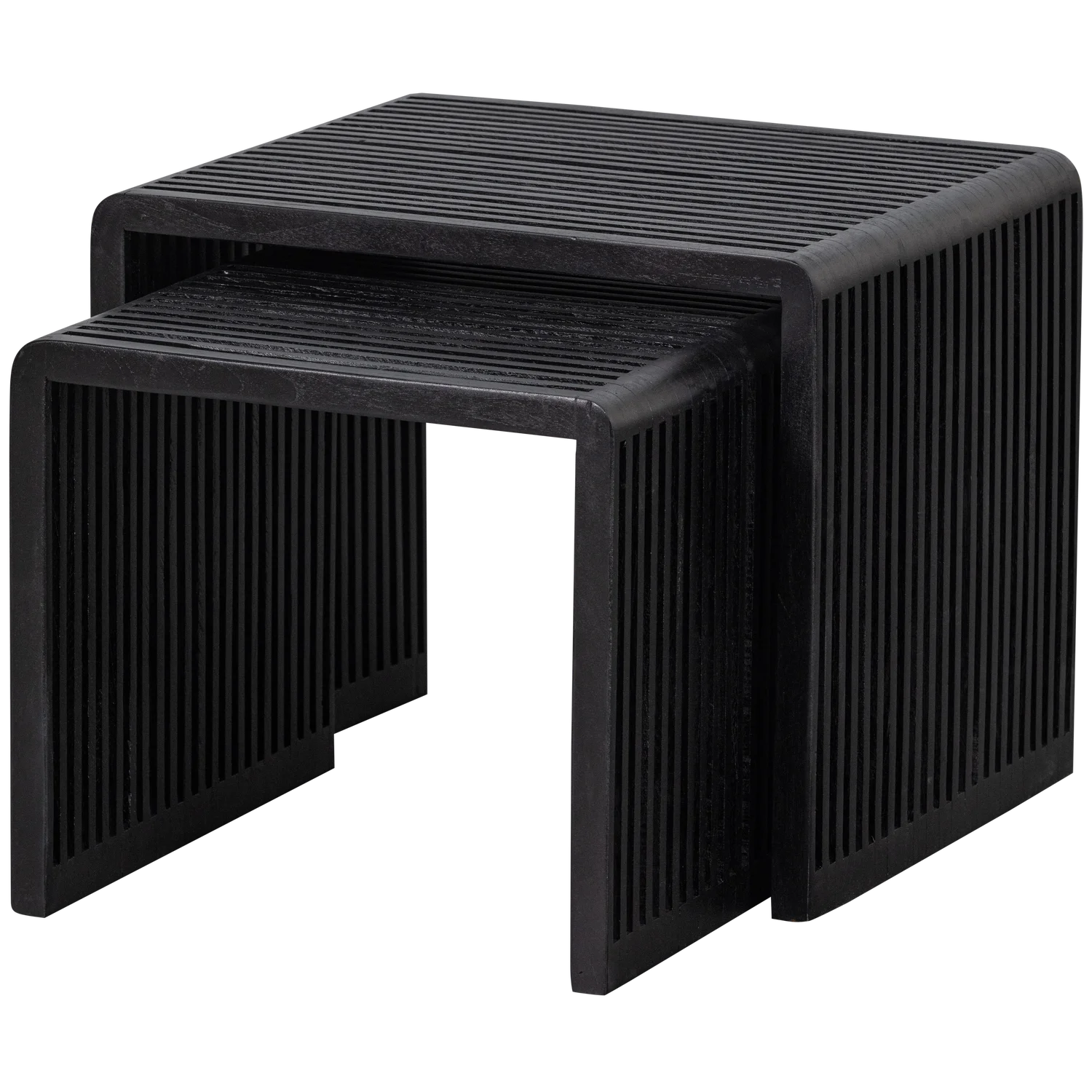 - Tijdloos en Elegant Design: Het strakke, minimalistische ontwerp maakt deze set bijzettafels veelzijdig en perfect voor verschillende interieurstijlen. De rustige uitstraling van het matzwarte teakhout voegt een subtiele luxe toe aan je ruimte, zonder te veel aandacht op te eisen.