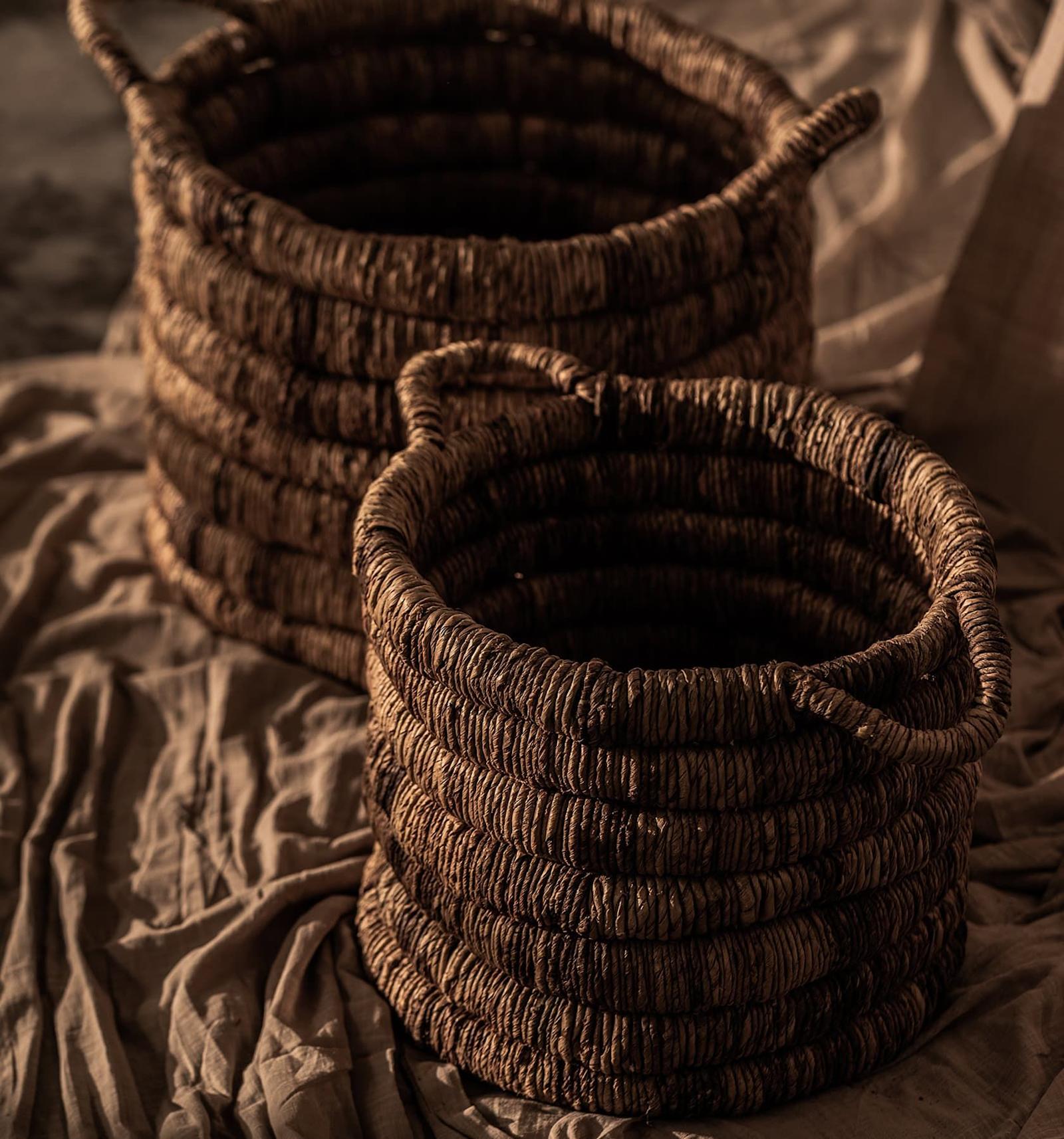Breng de rustieke charme van de natuur in huis met dit prachtige set van Caterpillar Sago manden. Deze ronde manden zijn met zorg handgeweven door lokale ambachtslieden en vervaardigd uit de duurzame abacavezel, die bekend staat om zijn uitzonderlijke sterkte en flexibiliteit. Dankzij hun tijdloze ontwerp en natuurlijke uitstraling voegen de manden moeiteloos een verfijnd, organisch accent toe aan jouw interieur. Perfect voor het opbergen van spullen of als decoratief statement in verschillende ruimtes
